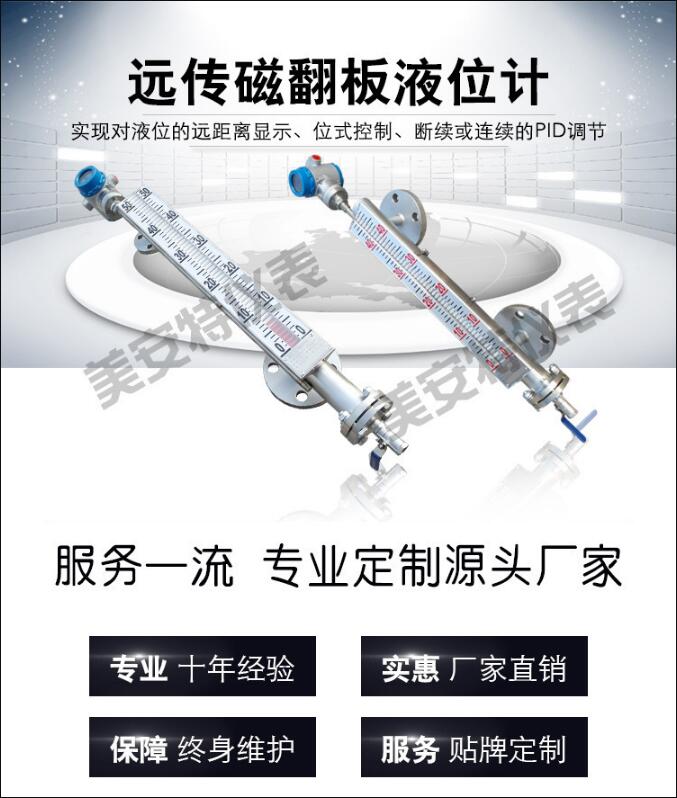 該係列磁性浮子91免费看片的网址可以做到高密封,防泄漏和適應高壓高溫、腐蝕性條件下的液位測量,具有可靠的安全性, 它彌補了玻璃板(管)91免费看片的网址指示不清晰,易破碎的不足,不受高、低溫度劇變的影響,不需多組91免费看片的网址的組合。全過程測量無盲區,顯示醒目、讀數直觀,且測量範圍大。 特別是現場指示部分,由於不與液體介質直接接觸,所以對高溫、高壓、高粘度、有毒有害、強腐蝕性介質,更顯其優越性。因此,它比傳統的玻璃管,板式91免费看片的网址具有更高的可靠性、安全性、先進性、實用性。